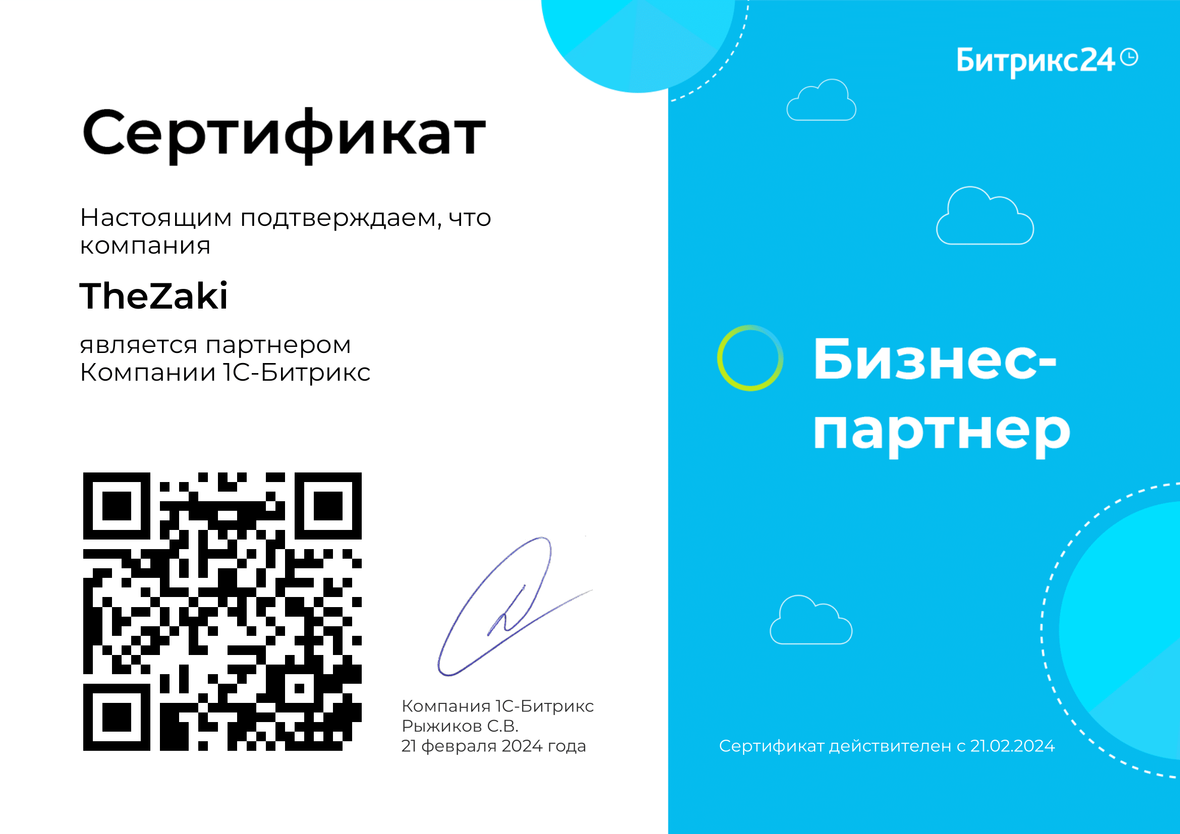 Запуск первых проектов по внедрению Битрикс24 и автоматизации бизнес‑процессов. Получение сертификатов партнёров CRM‑систем.