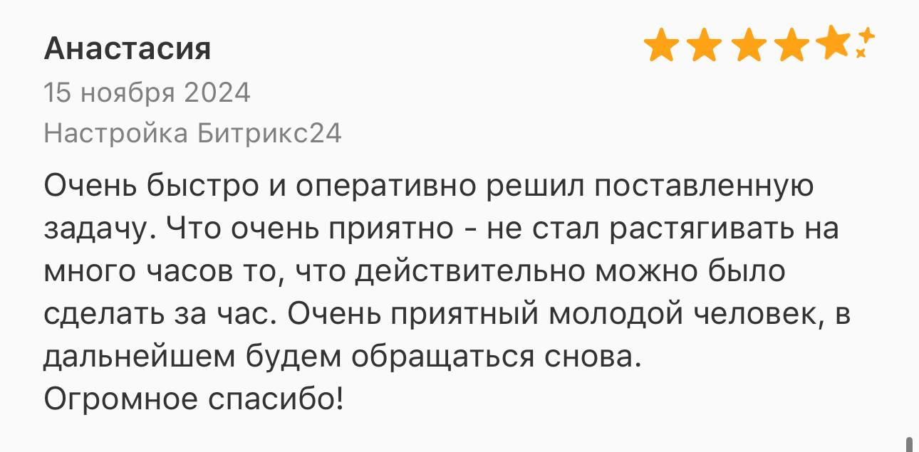Мы не просто настраиваем — мы вникаем, обучаем и ведём проект до результата.